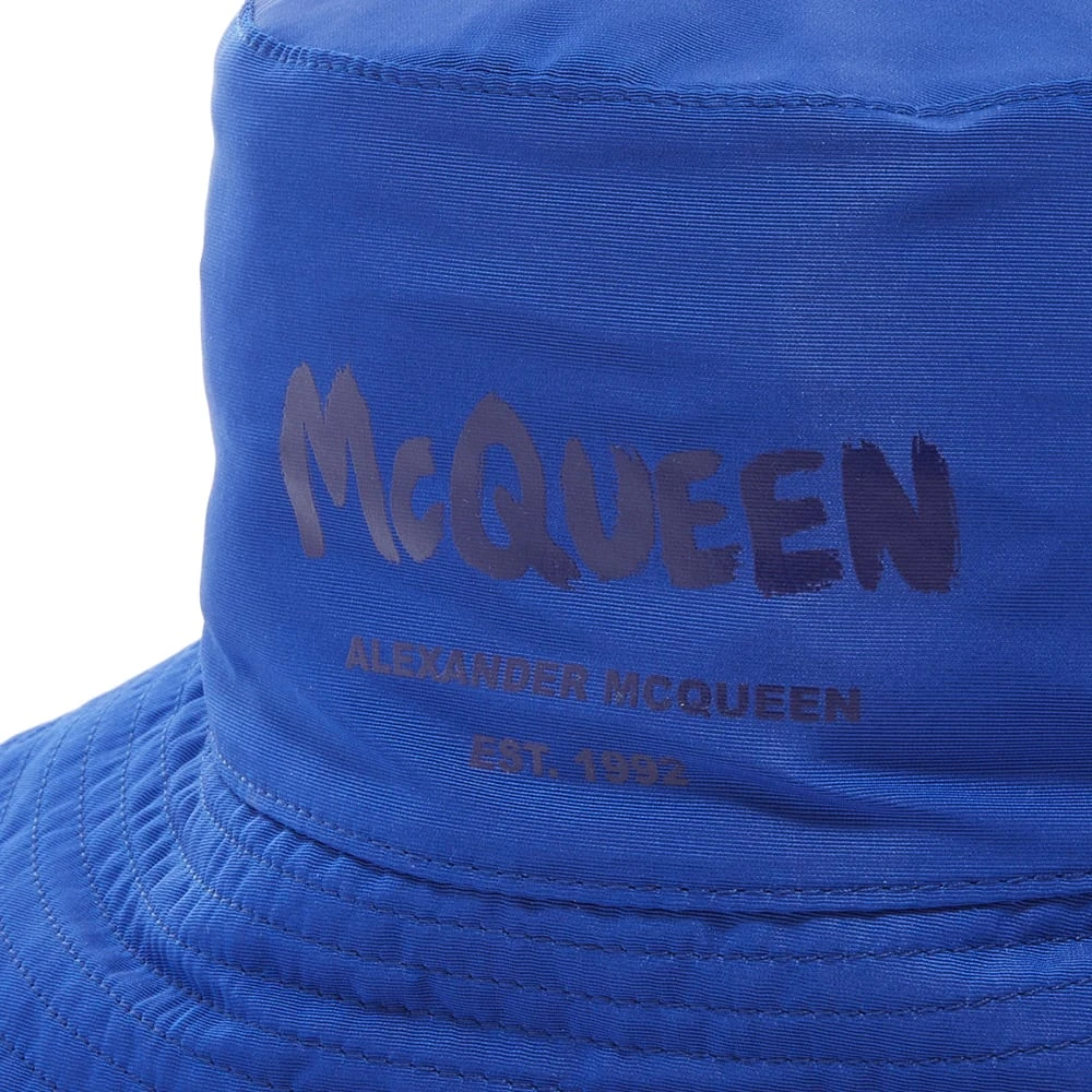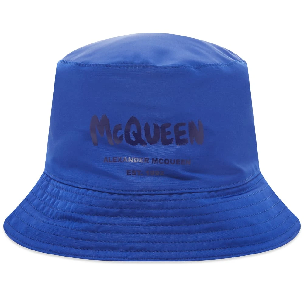 Stay shaded this season thanks to Alexander McQueen’s cobalt blue bucket hat. Crafted from a light and breathable fabric, it’s fitted with a stitched brim then decorated with gothic-style printed branding at the front.