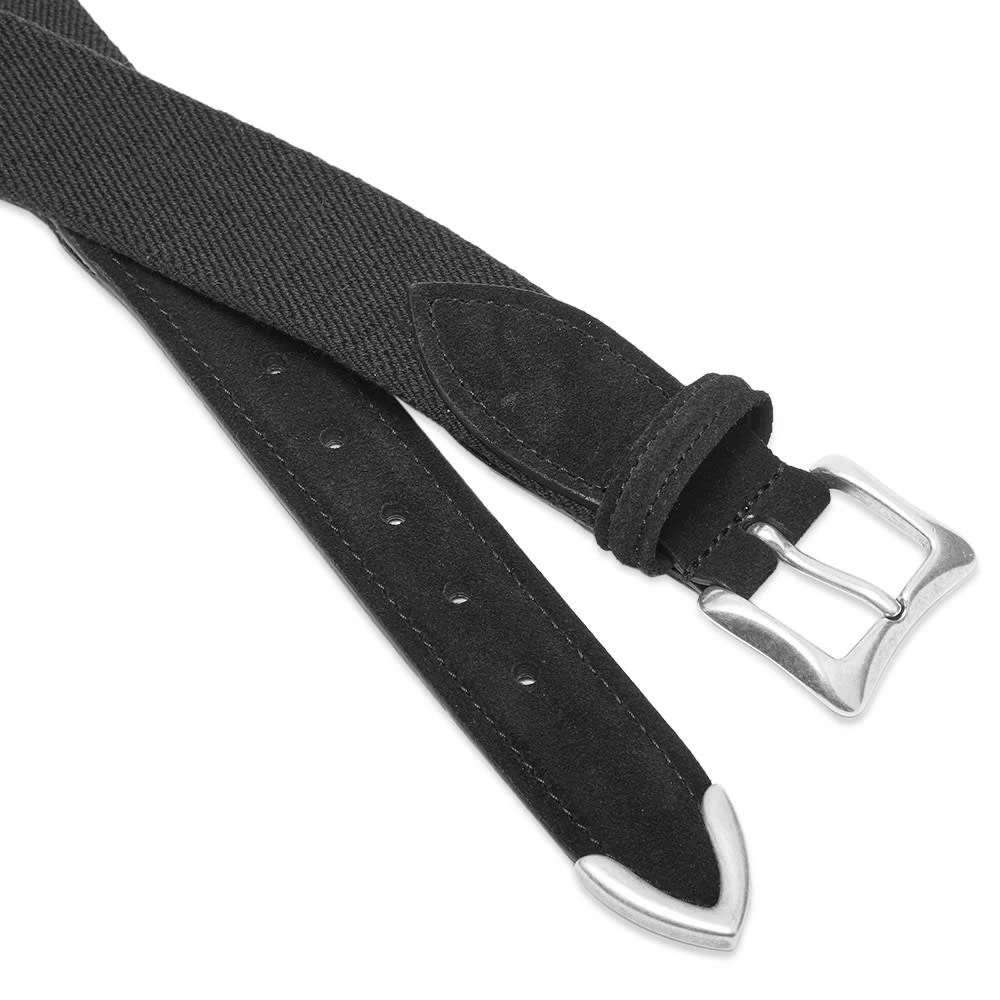 Expertly crafting belts in Parma for over fifty years, Anderson’s welcomes this cotton drill belt to its latest collection. It’s woven in Italy from cotton and features suede leather detailing, complete with a silver-toned buckle closure.