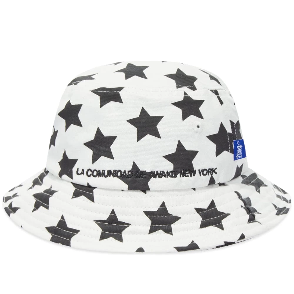 Top off your skate-ready look with this white twill bucket hat from Awake NY. Adorned with the streetwear brands trademark star print graphic, it’s styled with a classic topstitched brim and features tongue-in-cheek ‘La comunidad de Awake New York’ brand embroidery across the front.