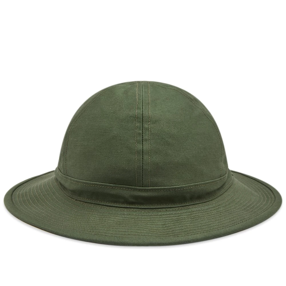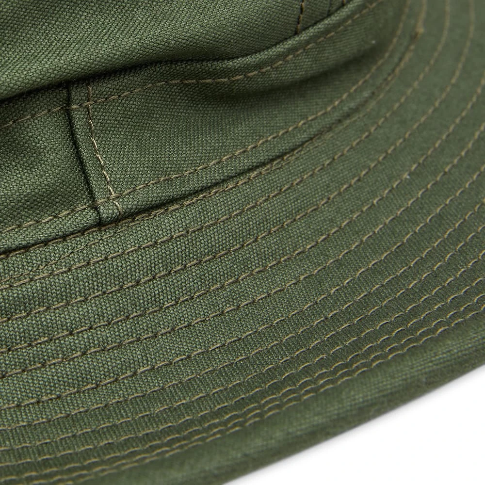 Beams Plus’ workwear influence shines through this hat. Crafted from cotton poplin in Japan, it’s coloured army green, complete with tonal stitching and a wide brim.