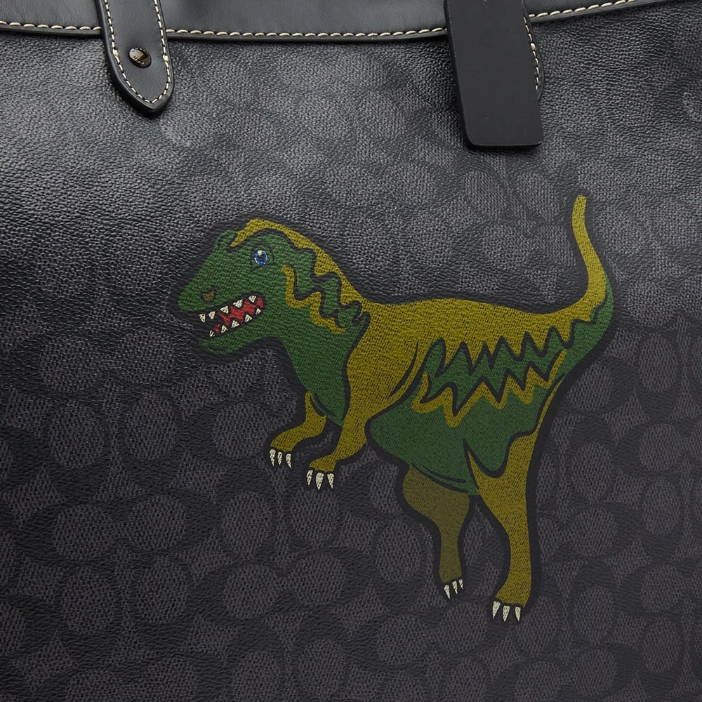 If you’re not familiar, this is Rexy – Coach’s mascot. Loved far and wide, the playful prehistoric motif has gained momentum, taking its stage on the brand’s fine leather goods. Catch him on this Field Tote 404 bag, printed at the centre on the signature coated and monogrammed canvas. Generously sized, there’s an interior pocket for the essentials and room for your laptop. Carry with the two leather top handles, or wear cross body with the sporty webbing strap.