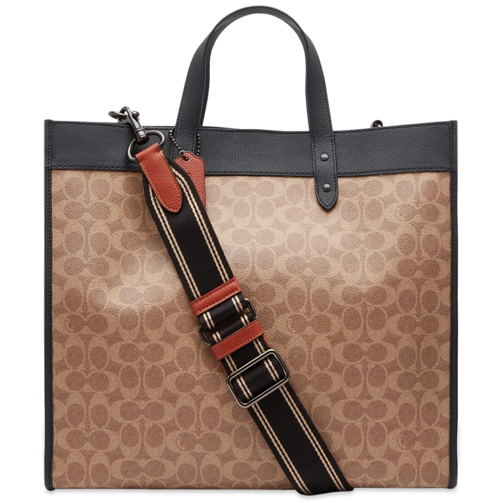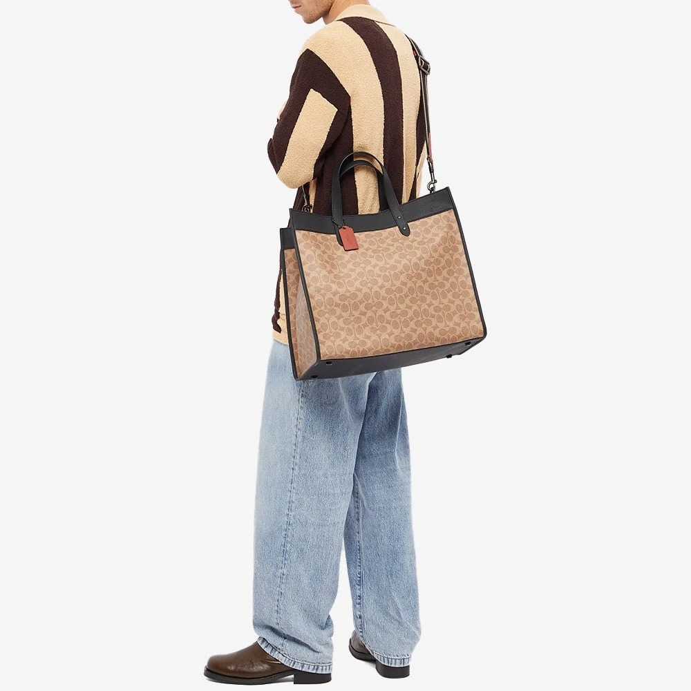 Coach’s Field Tote is perfect for busy weekdays and weekend getaways. Crafted from smooth leather and the label’s signature monogram canvas, it has space to hold everything you need and more – including room for a 15” laptop and an inside zip pocket for smaller essentials. Complete with two carry handles and a detachable strap, it really is the ultimate versatile accessory.