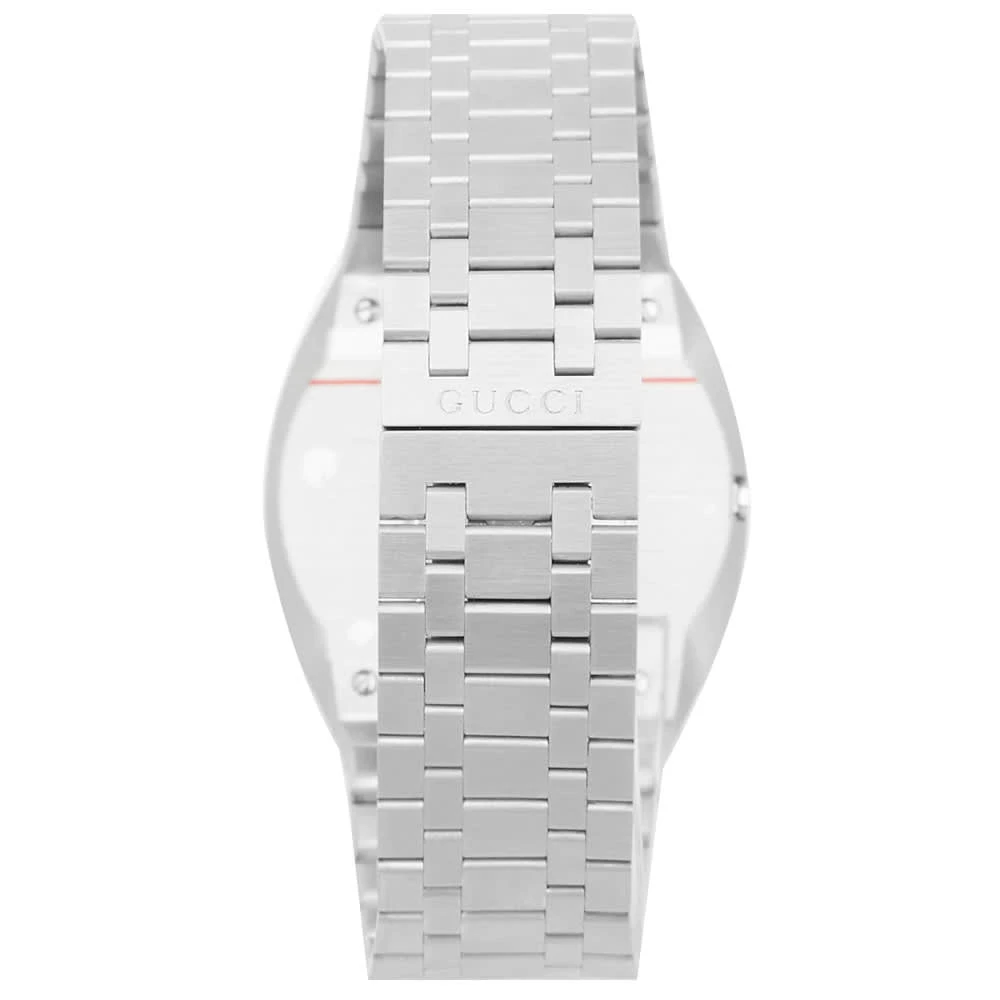 Fashion house Gucci is the pinnacle of Italian craftsmanship, as part of the Love Parade collection, it presents the 25H watch. Inspired by contemporary architecture, the watch features a 38mm stainless steel multi layered case with a white dial with Interlocking G motif and ocean blue coloured glass, five links stainless steel bracelet