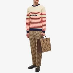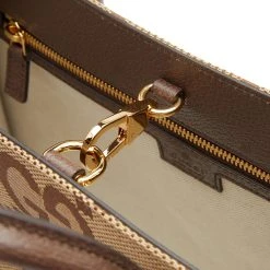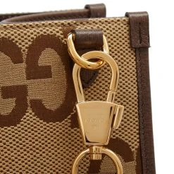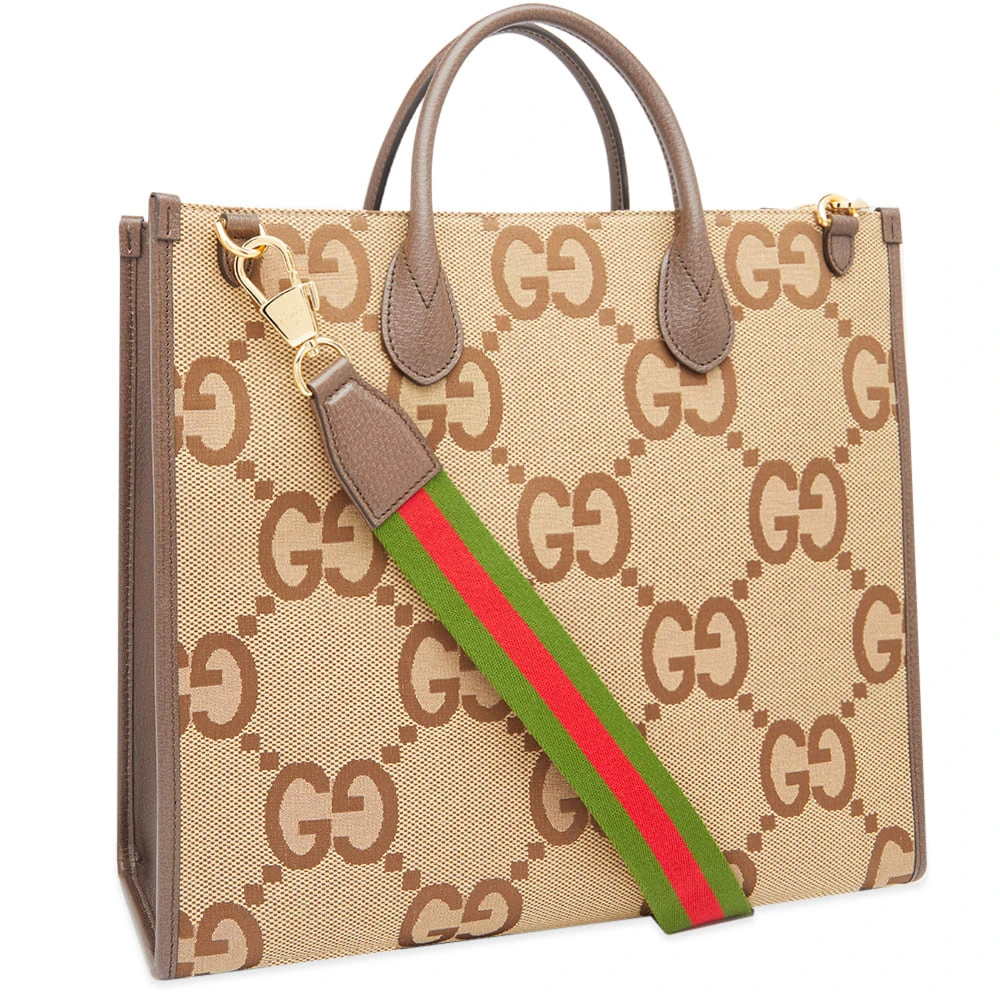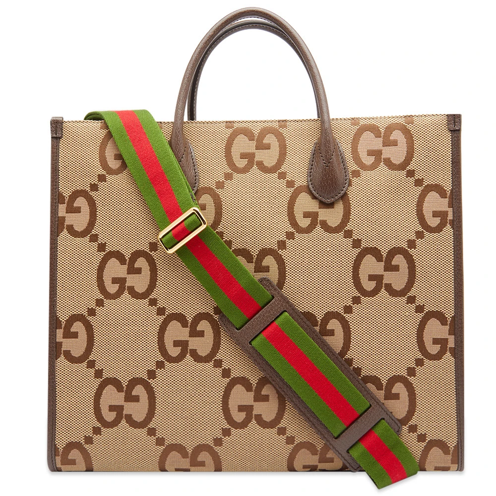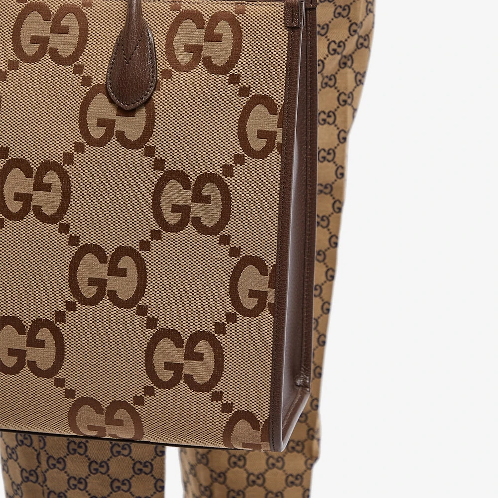 Gucci reinvents its signature bag with this jumbo tote. Made from a cotton blend, it features the brand’s classic logo in an interlocking jacquard print over a camel-coloured base, complete with an inside zip pocket and a secure hook closure. A handle and shoulder strap allow for easy wear, day or night.