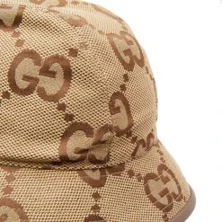 Gucci interlocking G is one of the most recognisable logos in the world of fashion – and it’s detailed in an all-over fashion on this camel-coloured bucket hat. Crafted from premium canvas fabric, it’s detailed with a brown leather trim for a luxe finish.