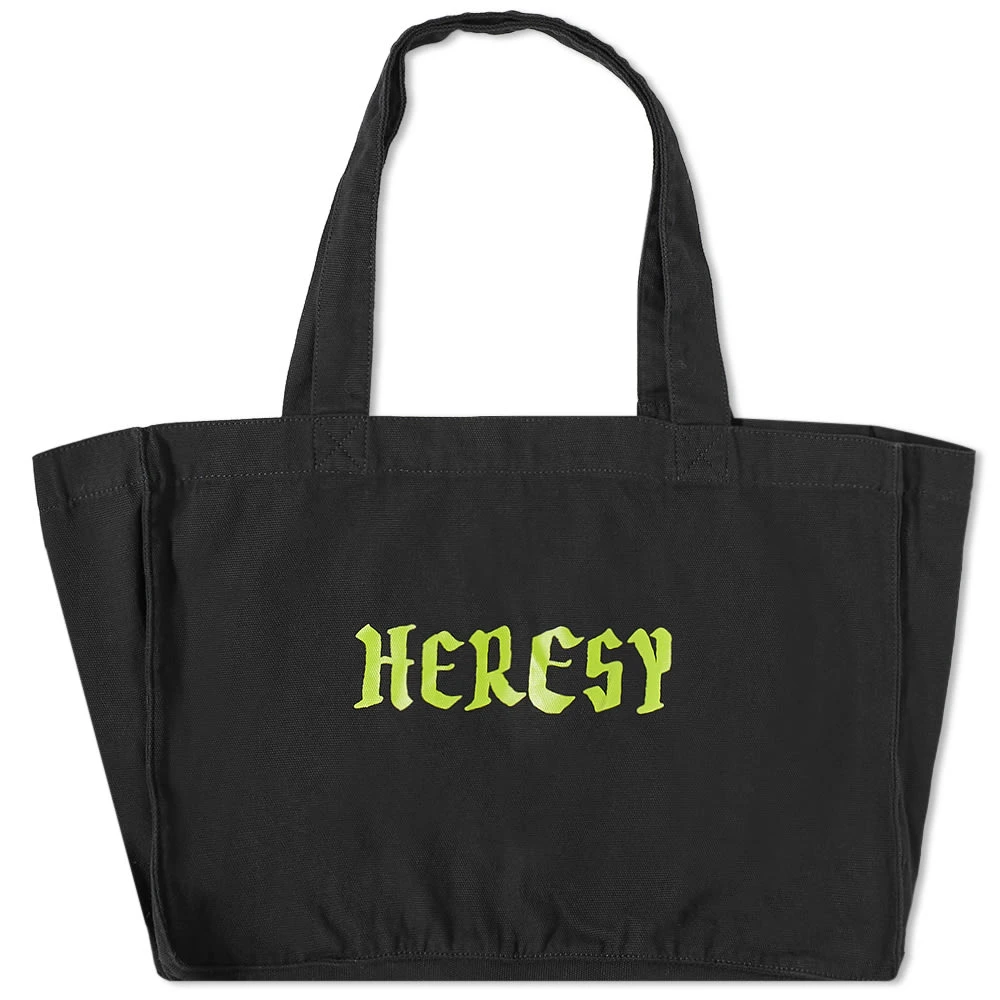 Heresy’s AW22 collection “Dwellers of Bogton” takes inspiration from British folklore – resulting in mystical designs like this tote bag. This distinctive Tung graphic is rounded together with a gothic-style variation on the signature logo for a distinctive addition to any ‘fit.