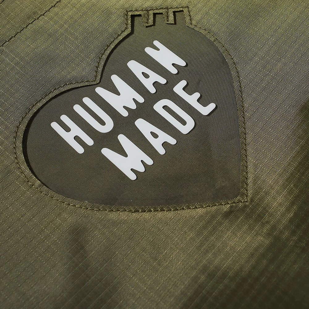 Carry your essentials in style with this contemporary, clear heart-shaped panel accessory by Japanese-based Human Made. Its olive green, graphic printed ripstop build embodies the label’s street-ready aesthetic and guarantees to elevate your casual-day ‘fit.
