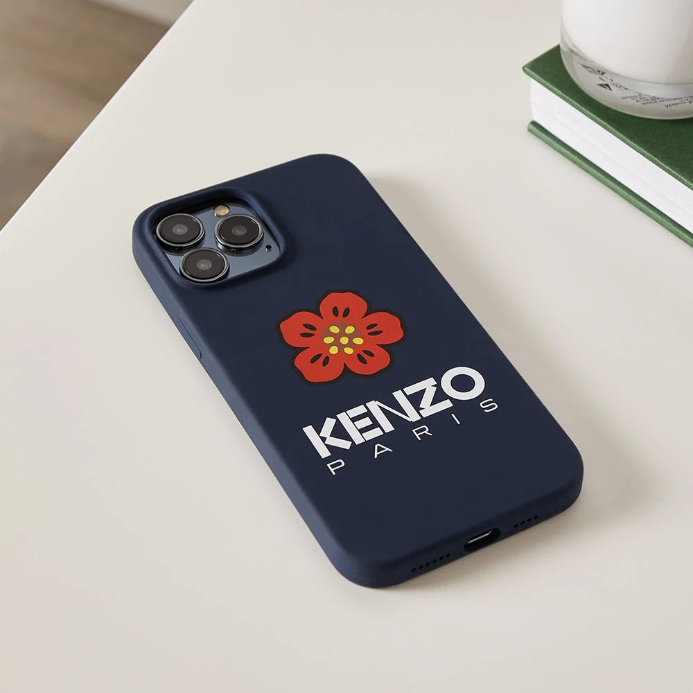 Showcasing Kenzo’s signature Japanese-inspired aesthetic, this navy blue phone case features a distinctive ‘Boke Flower’ emblem. Compatible with the iPhone 13 Max, it’s crafted from smooth supple silicone and comes complete with contrast white logo branding for a premium finish.