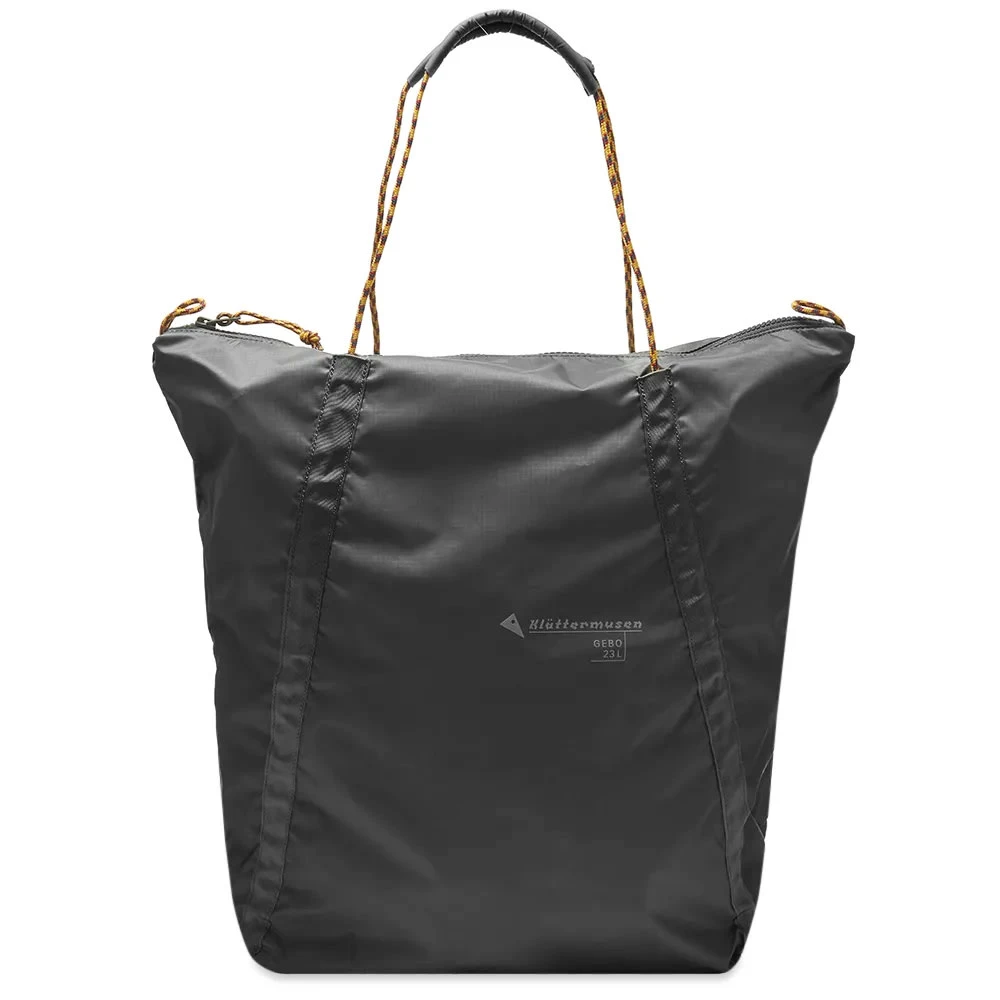 Made with exploration in mind, the Gebo tote by Klättermusen is lightweight and packable. Consciously crafted from recycled polyamide, it has an impressive 23 litre capacity and can be stowed into its own interior pocket.