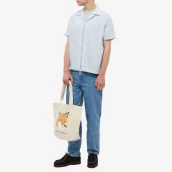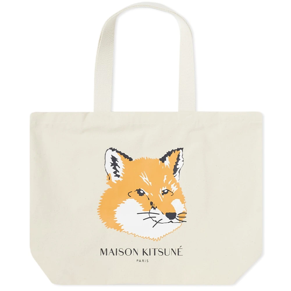 Kitsuné is Japanese for fox – an icon that Maison Kitsuné honour yet again with this ecru tote. Crafted from durable cotton, the front showcases a printed, flocked variation of the Franco-Japanese house’s namesake foxhead and printed branding underneath.