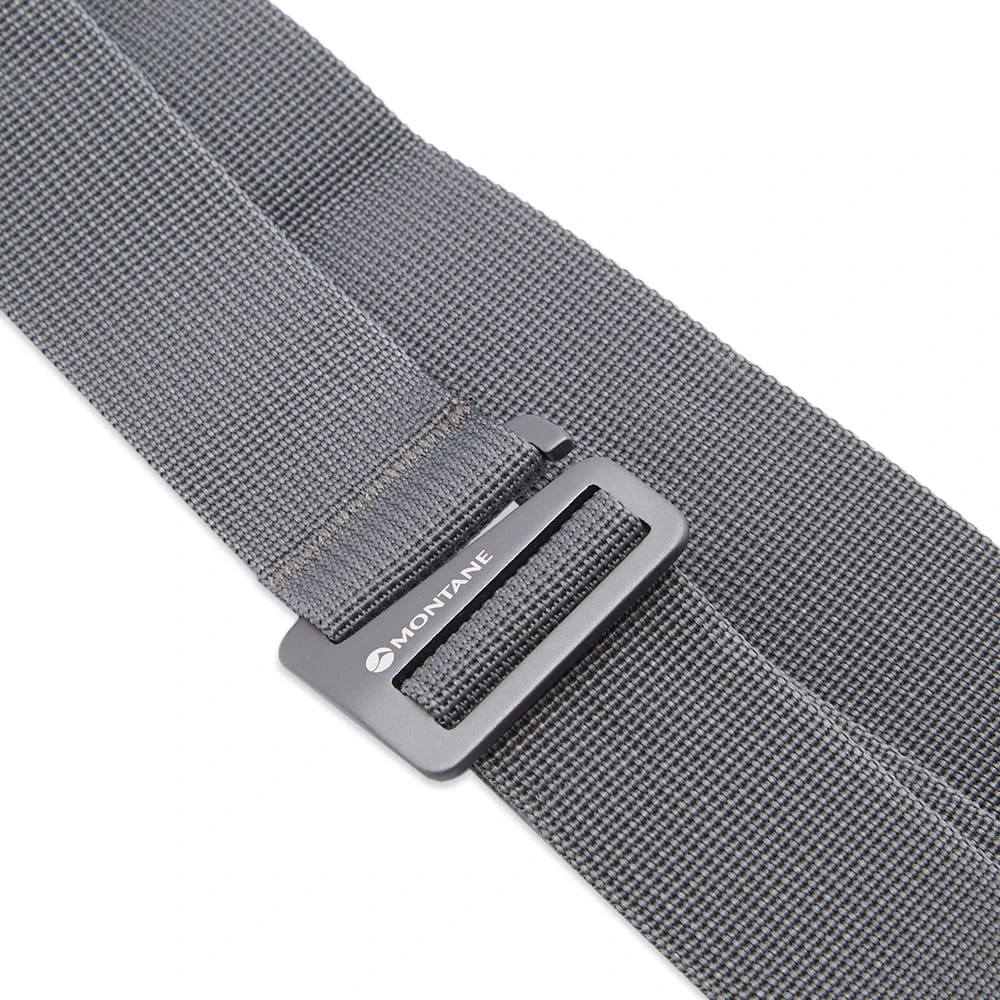 Strap in your outdoors look with this grey belt from Montane. Made from canvas fabric, it secures with a clasp buckle.