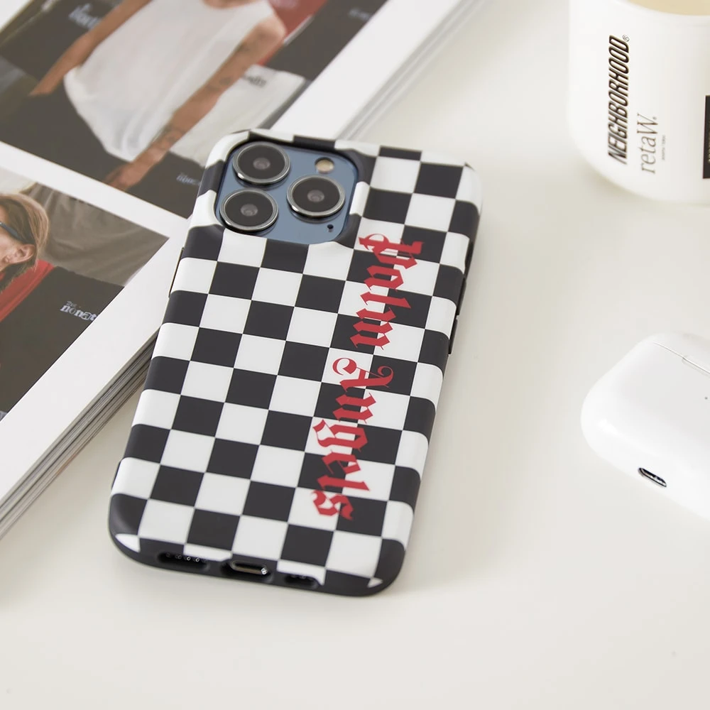 Add some street-cool to your electronic devices courtesy of this iPhone 13 Pro case from Palm Angels. Made from a lightweight and durable plastic, it’s detailed with a black and white checkerboard print with the brand’s signature gothic logo, in red.