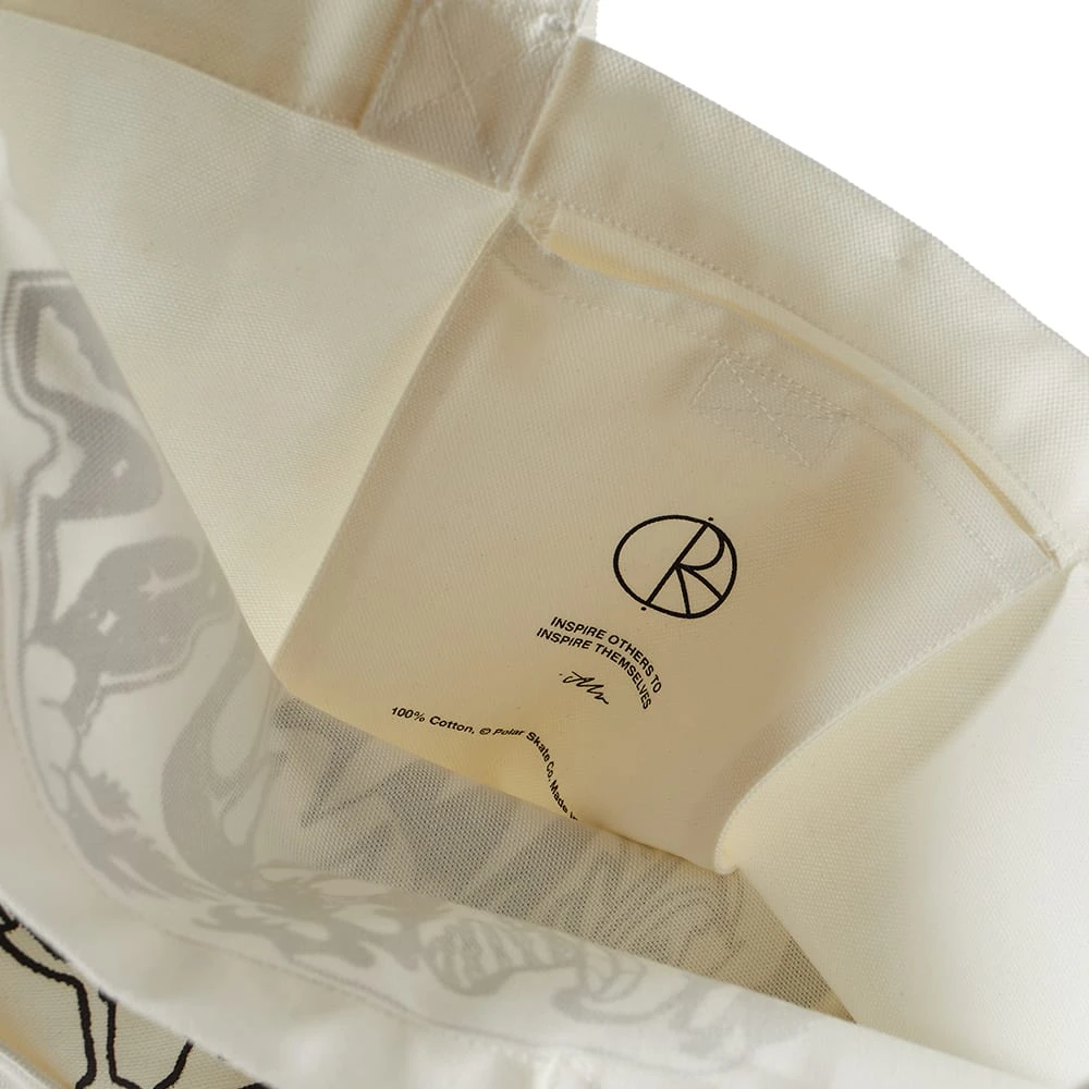From the new AW22 collection from Polar Skate Co. is the jungle tote. Featuring artwork on the back by fellow skateboarder Emile Laurent, this bag has the same print that is used on other apparel in the collection.