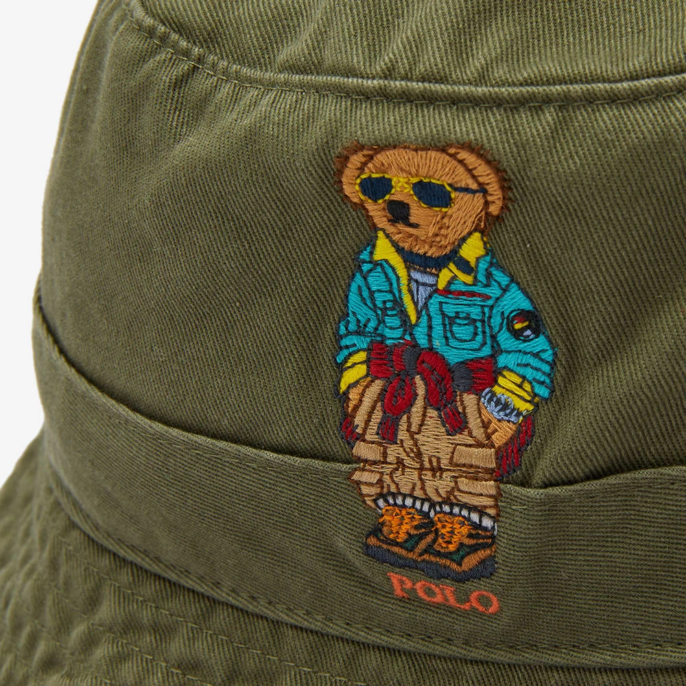 Polo Ralph Lauren styles this green bucket hat with the label’s signature friendly companion – the polo bear – embroidered on the front. Cut from cotton, it’s a playful summer essential to keep the sun off your face.