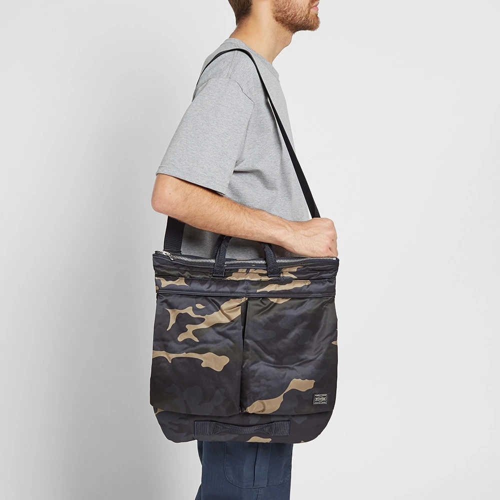 Both functional and stylish, Porter-Yoshida & Co.’s ‘Counter Shade Helmet’ tote shows off a nylon twill construction that’s perfect for carrying heavier loads. Fitted with an interior laptop pocket for the modern man on the go, the camouflage tote has two exterior pockets and a zipped main compartment for securely storing your valuables.