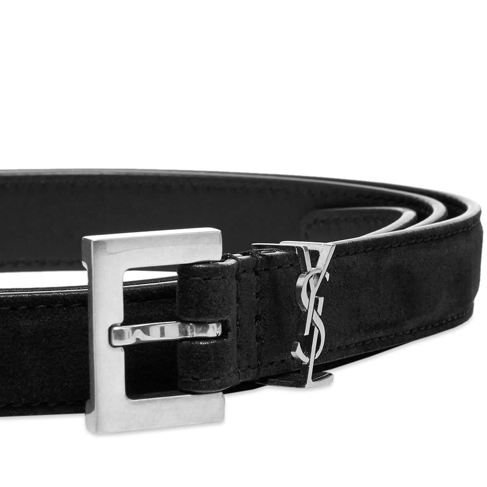 A belt can instantly add some luxury aesthetics to your look, especially if it’s this one from Saint Laurent. It’s crafted in Italy from soft black calfskin suede with brushed, silver-toned hardware — including a loop that takes the form of the iconic YSL monogram.