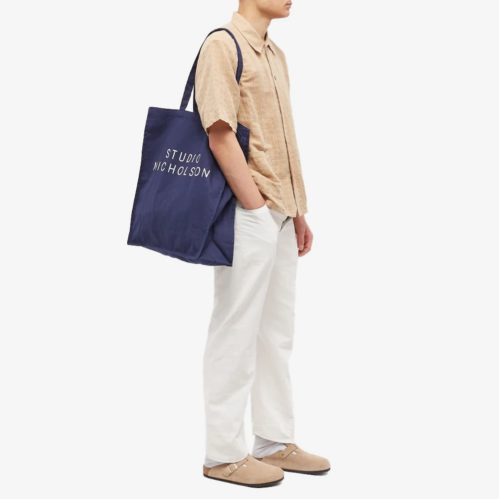 Helping to form the basis for the ultimate modular wardrobe, London-based label Studio Nicholson keeps its core values of functionality, modernity and playfulness in mind when creating the large tote bag. Perfect for carrying essential items or groceries, the must-have accessory is crafted from sturdy cotton, finished with the iconic Studio Nicholson logo printed on the front.