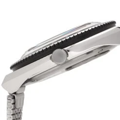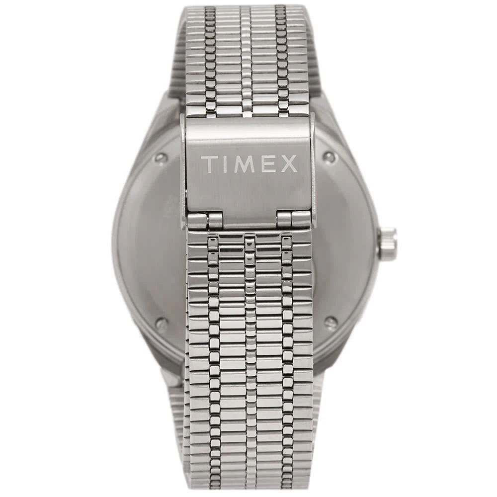 A diver-inspired timepiece from Timex, this Reissue watch is made using stainless steel and detailed with touches of black and green. Fitted with a date window, it’s completed with a rotating bezel, a woven stainless-steel bracelet, a functional battery hatch and a domed acrylic crystal lens.