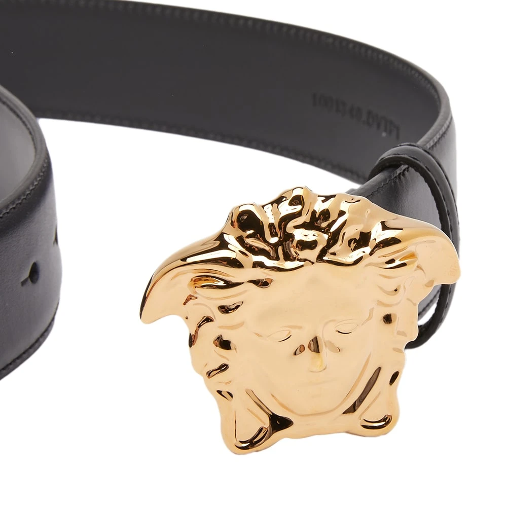 On the floor of a Grecian ruin where Gianni Versace played as a child, a Medusa head carving inspired him – she made you fall in love with no way back. Now Versace creates apparel and accessories with the Grecian goddess as the medallion of good luck. The Medusa belt features the goddess as a gold emblem on the front of the minimalist black belt.