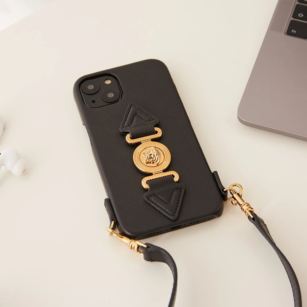 Gianni Versace was inspired by the ruins of Reggio Calabria where he played as a child where meandros borders and Medusa heads featured on every carving. Now Versace takes inspiration from the owner’s history in most of the collections. The Medusa head phone strap holder is the most luxurious way to keep your phone safe and close. Designed for the iPhone 13 Pro, this case features a removable body strap and the iconic Medusa head engraved as a medallion on the font.