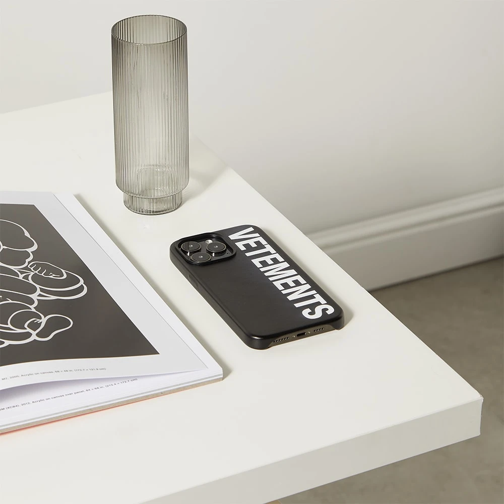 VETEMENTS puts its street-ready stamp on this sleek black phone case. Compatible with an iPhone 12 Pro Max, it’s durable construction will keep your tech safe all day long and is complete with the label’s signature logo in bold white to finish.