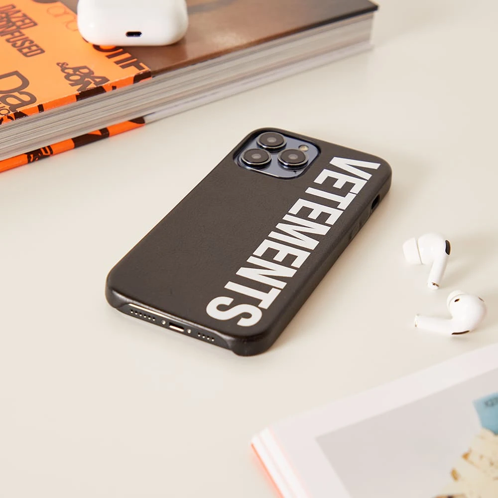 VETEMENTS puts its street-ready stamp on this sleek black phone case. Compatible with an iPhone 13 Pro Max, it’s durable construction will keep your tech safe all day long and is complete with the label’s signature logo in bold white to finish.